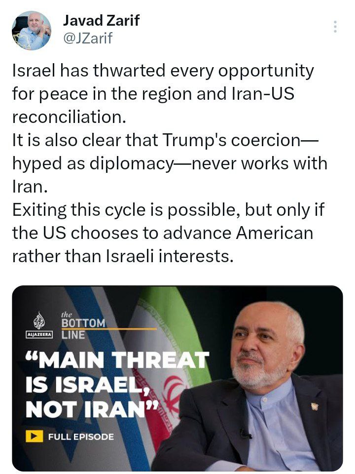 Javad Zarif: Main threat to the Middle East is Israel, not Iran