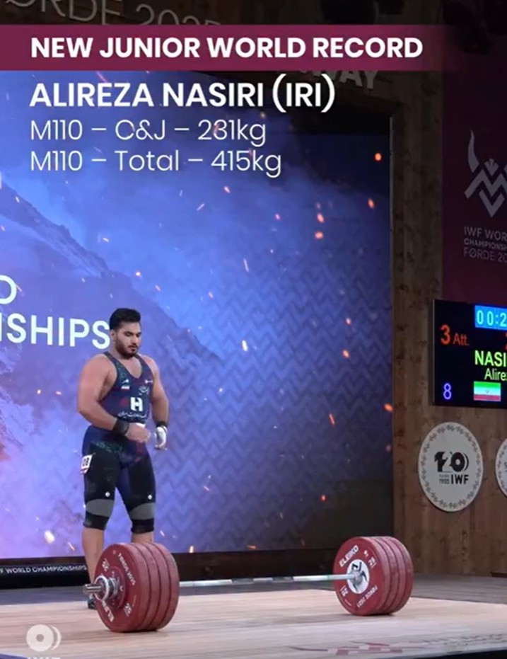 Competing in the 110 kg category, Nasiri showcased his strength and skill, finishing seventh in the snatch with a lift