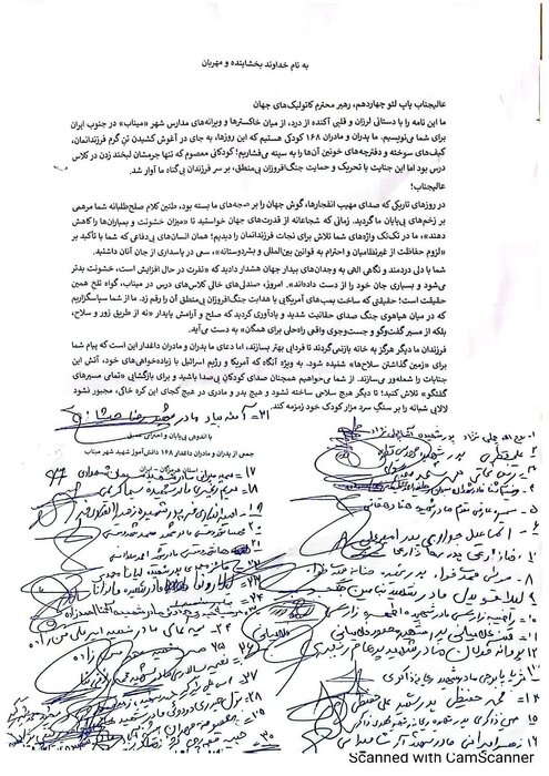 In a letter addressed to the pontiff, the aggrieved Iranian families have also asked the Pope to work with his enlightenment, so that no parent anywhere on the planet is forced to hum a lullaby over the cold stone of their child’s grave.